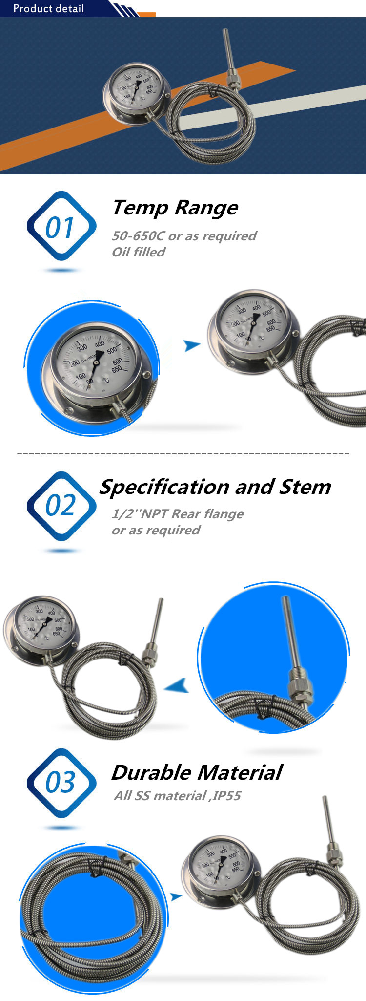 Material | Full stainless steel 304, filled without oil,glass lens |